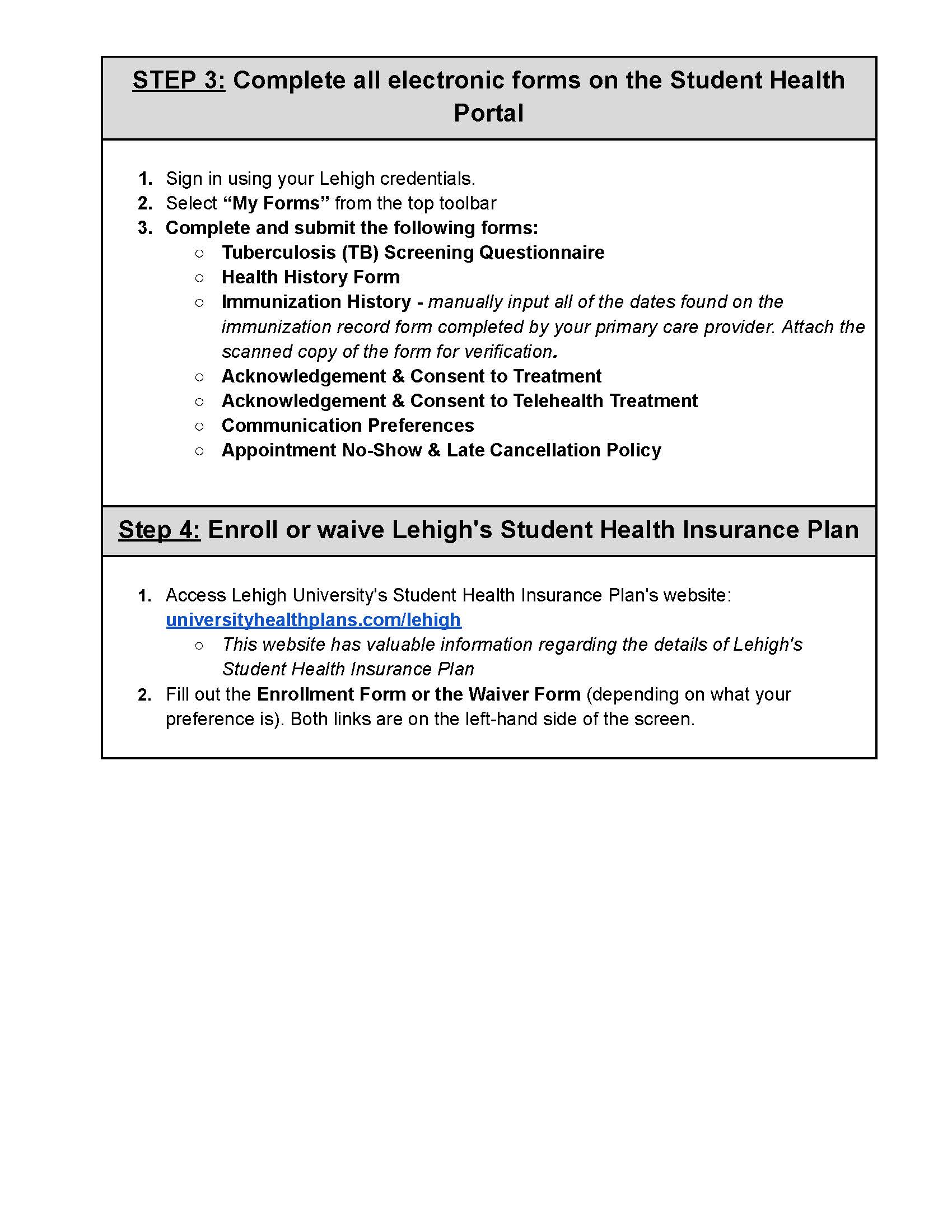 | Step 3: Enroll or waive Lehigh's Student Health Insurance Plan |