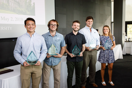 This award shall be presented to the graduating student or students who exhibit the qualities of James J. Duane III, Class of 1973, whose leadership ability, exemplary moral character and dedication to improving campus life through collaboration with faculty, administration and student organizations has enriched student life at Lehigh University. This award serves to recognize students who are committed to high ideals and making a positive difference for the University they love.